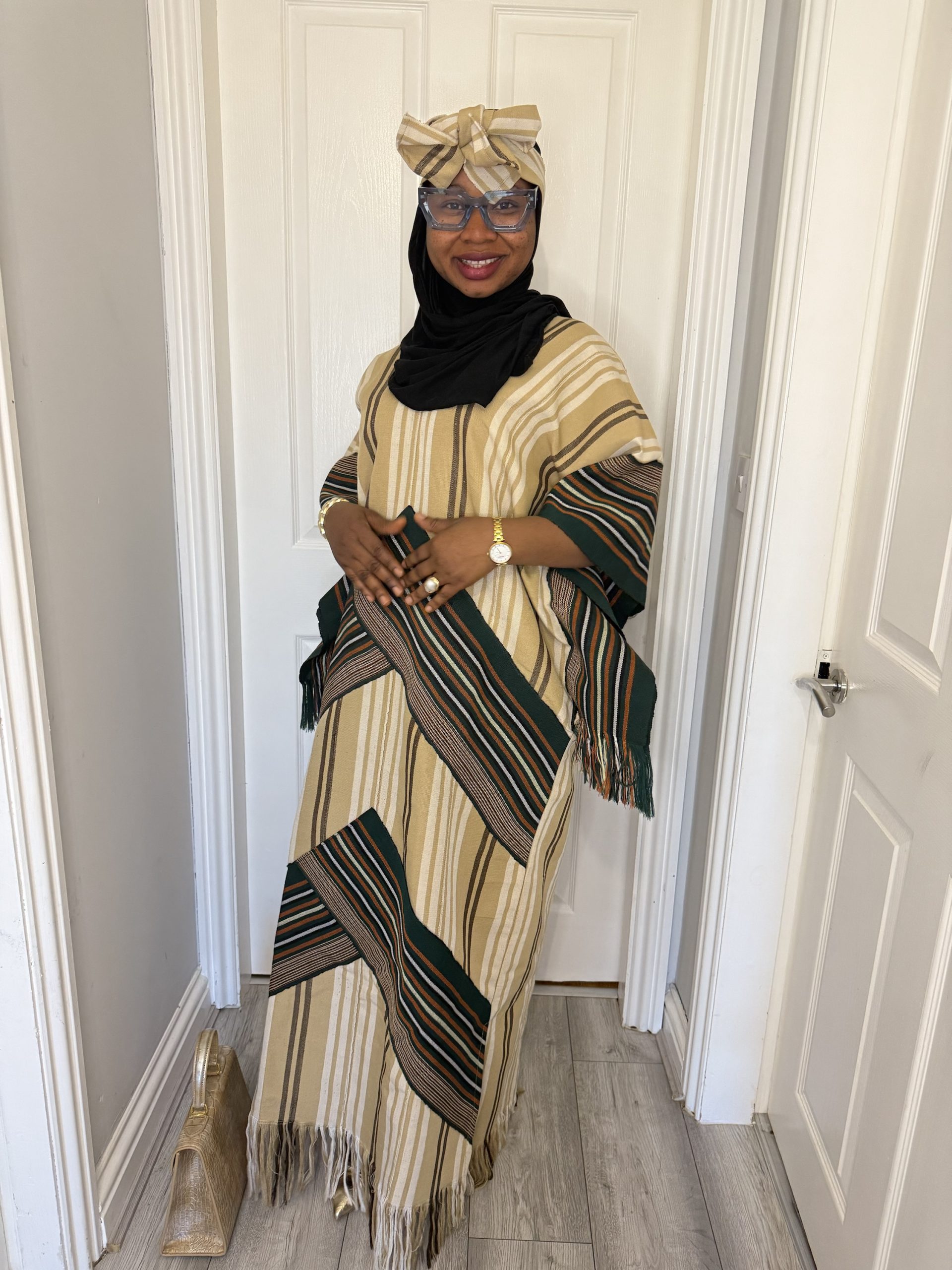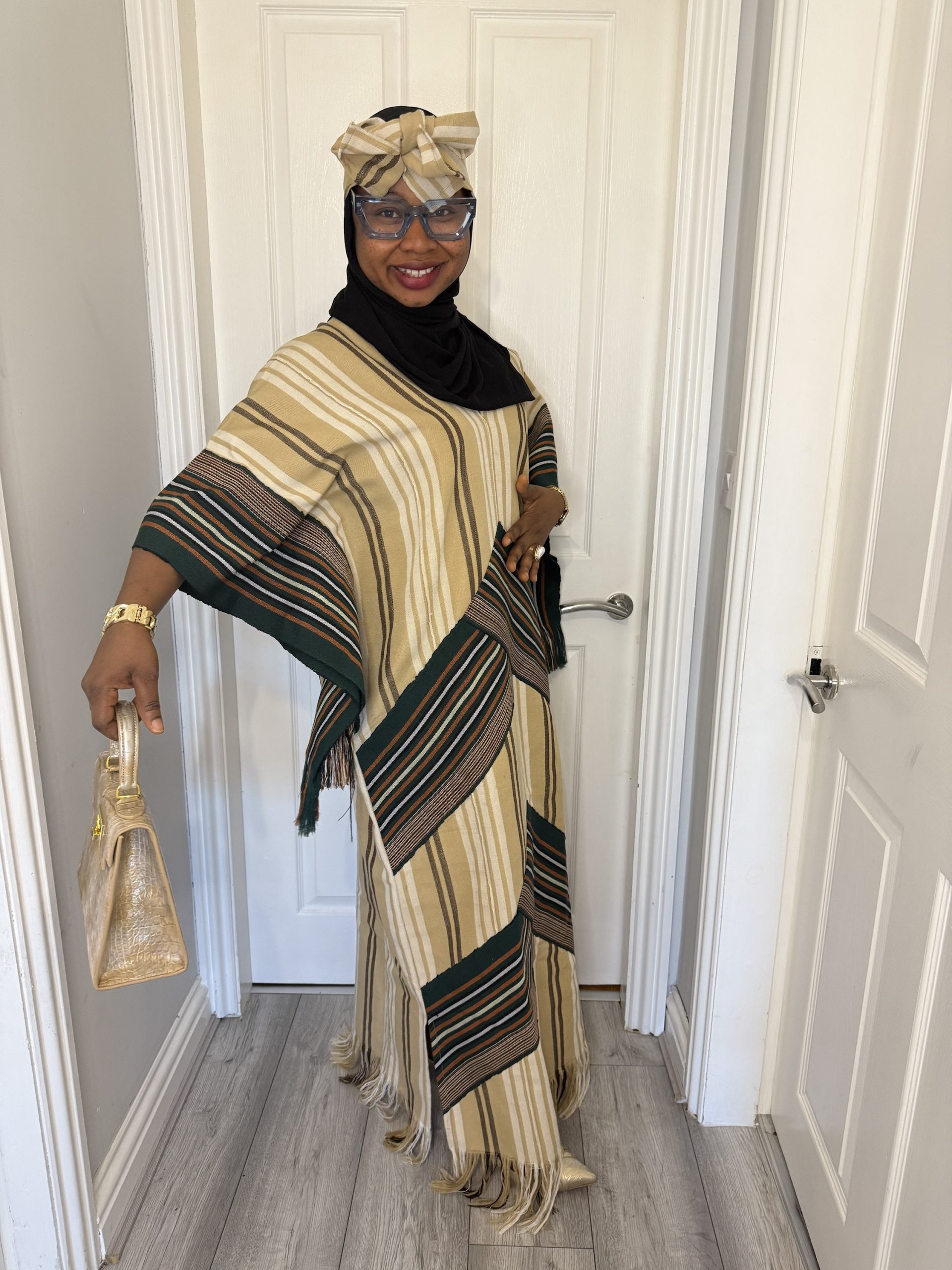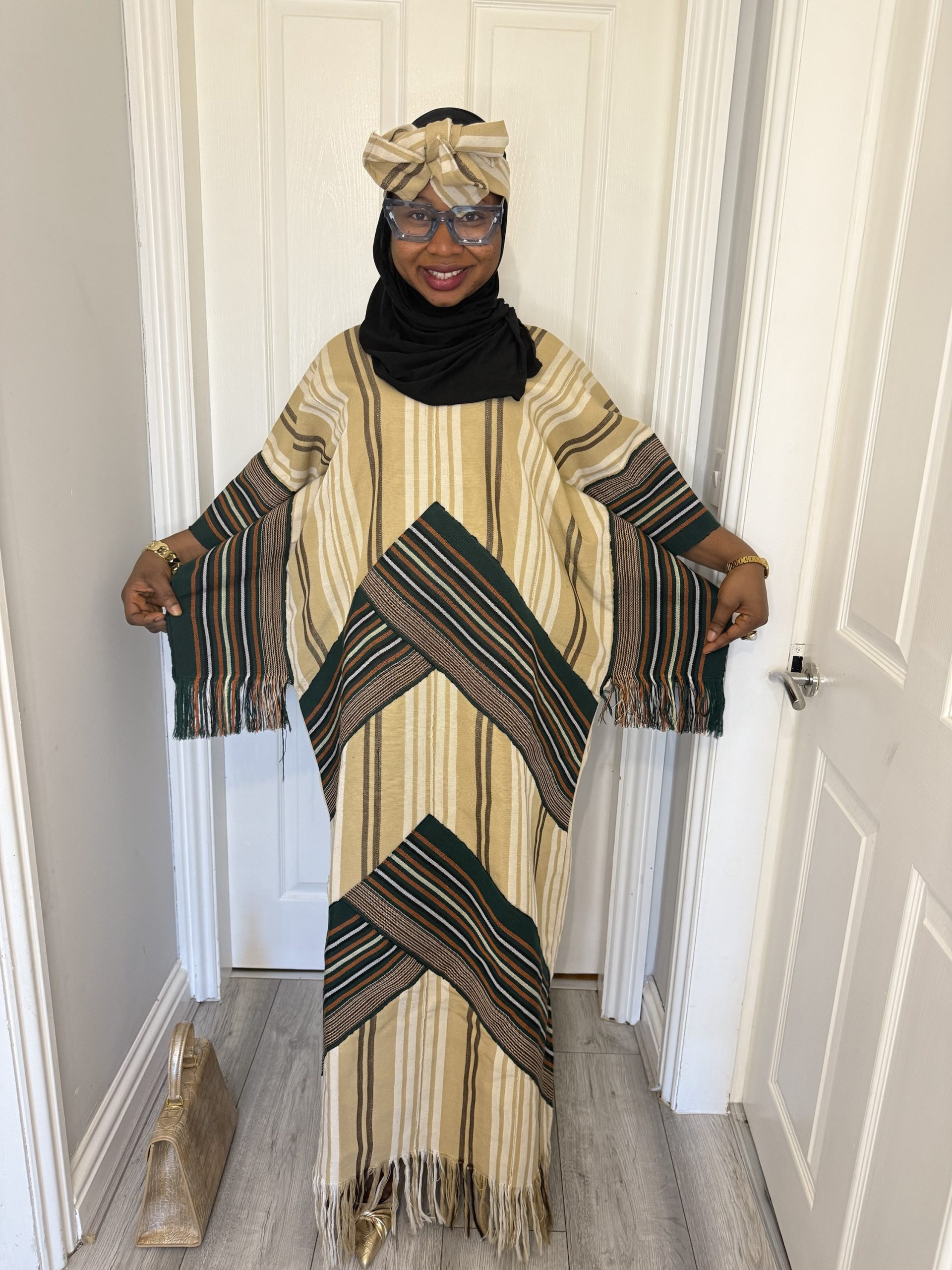 Authentic Ofi Aso Oke fabric in rich cream and vintage green tones