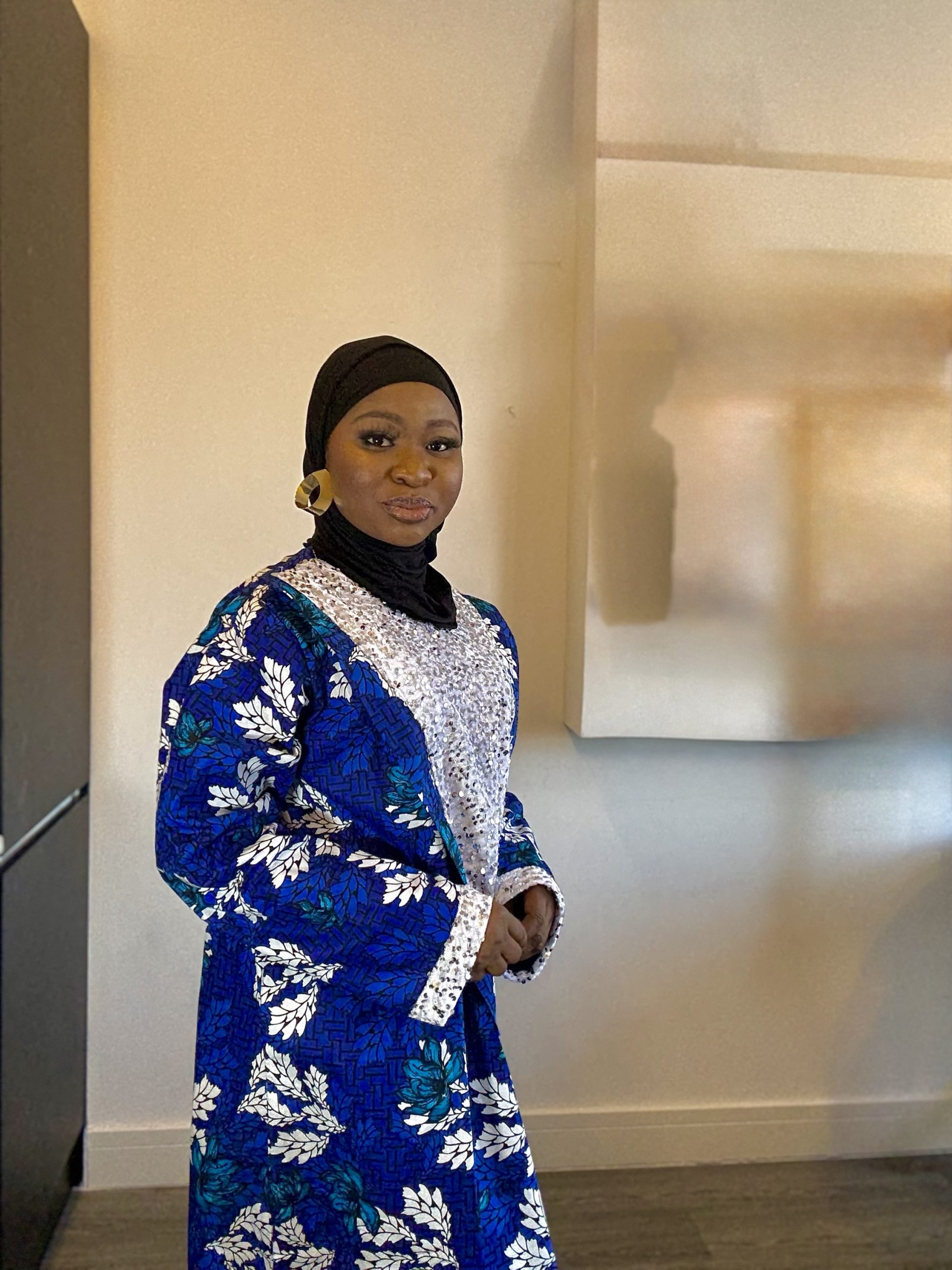 Product Name: Blue Ankara A-Shape Gown with White Sequin Detail