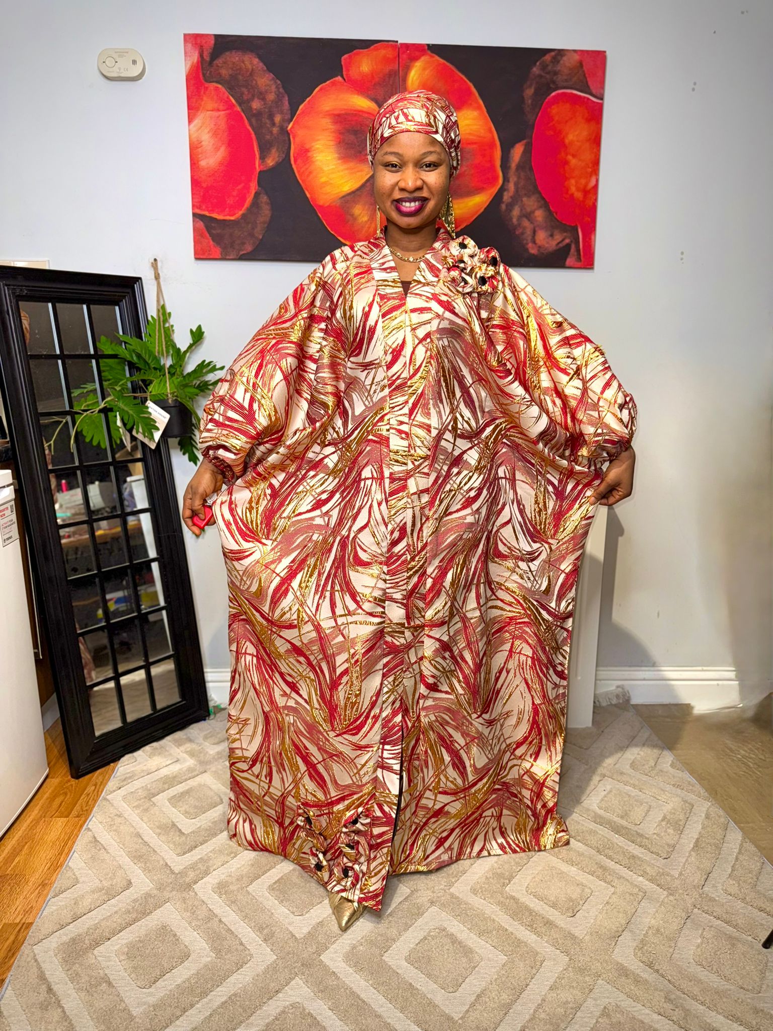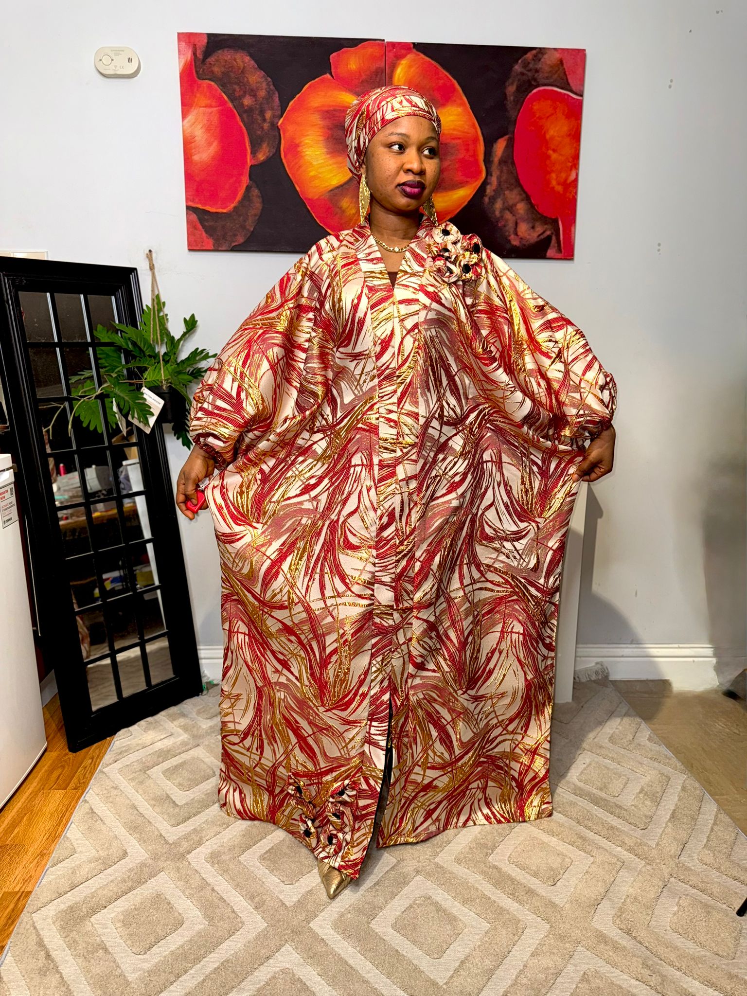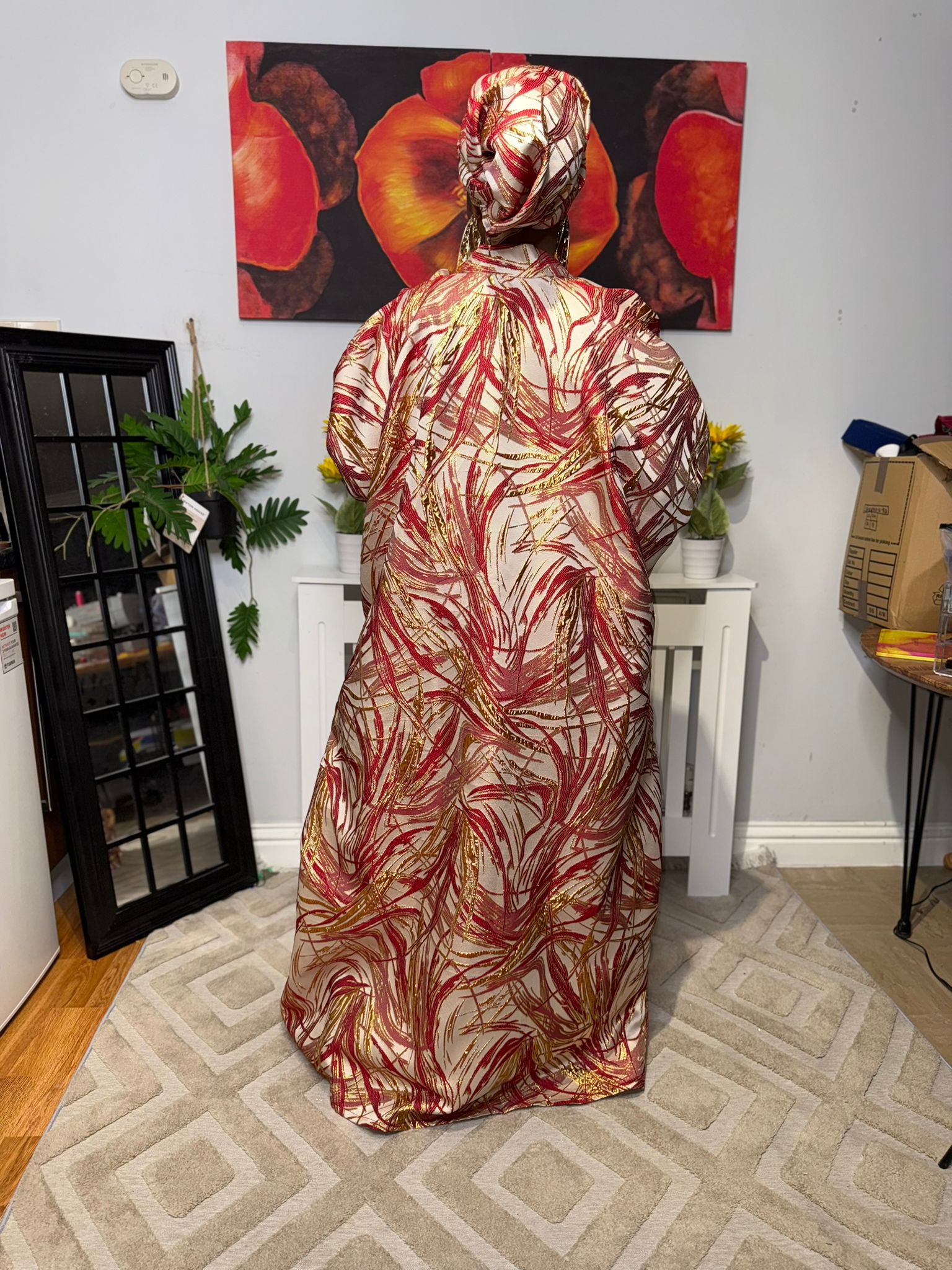 Royal Ember – Wine& Gold Brocade Boubou Dress UK | Luxury African Kaftan.